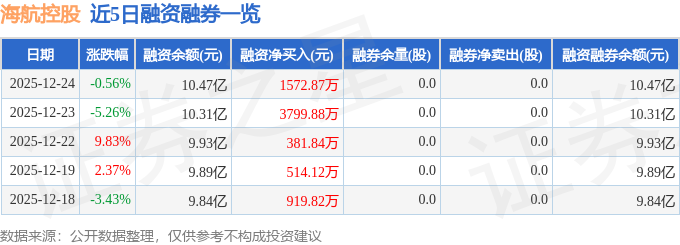 海航控股融资融券信息显示,融资方面,当日融资买入1.2亿元,融资偿还1.04亿元,融资净买入1572.87万元,连续3日净买入累计5754.58万元。融券方面,融券卖出0.0股,融券偿还0.0股,融券余量0.0股,融券余额0.0万元。融资融券余额10.47亿元。