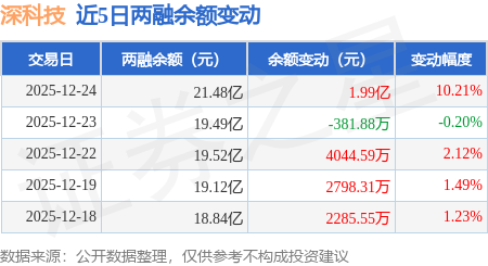 证券之星消息,12月24日,深科技(000021)融资买入4.03亿元,融资偿还2.04亿元,融资净买入1.99亿元,融资余额21.3亿元,当日融资净买入排名第16,近20个交易日中有11个交易日出现融资净买入。