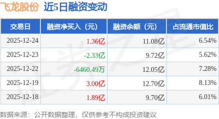 证券之星消息,12月24日,飞龙股份(002536)融资买入5.84亿元,融资偿还4.48亿元,融资净买入1.36亿元,融资余额11.08亿元,当日融资净买入排名第30。