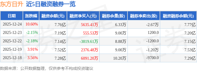 证券之星消息,截至2025年12月24日收盘,东方日升(300118)报收于14.08元,上涨10.6%,换手率16.1%,成交量149.25万手,成交额20.17亿元。