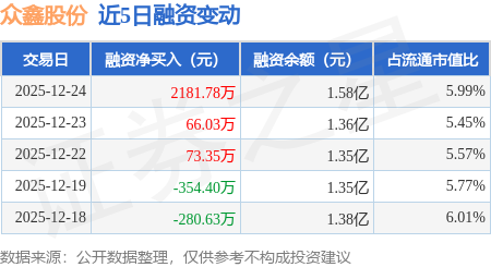 证券之星消息,12月24日,众鑫股份(603091)融资买入3332.98万元,融资偿还1151.2万元,融资净买入2181.78万元,融资余额1.58亿元,近3个交易日已连续净买入累计2321.16万元。