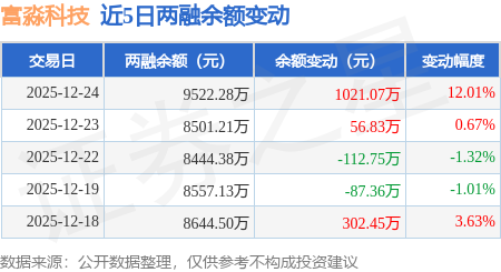 证券之星消息,12月24日,富淼科技(688350)融资买入2159.64万元,融资偿还1138.57万元,融资净买入1021.07万元,融资余额9522.28万元。