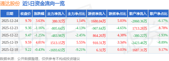 12月24日的资金流向数据方面,主力资金净流入380.32万元,占总成交额1.14%,游资资金净流入1680.04万元,占总成交额5.03%,散户资金净流出2060.36万元,占总成交额6.17%。