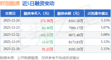 证券之星消息,12月24日,时创能源(688429)融资买入301.5万元,融资偿还129.12万元,融资净买入172.38万元,融资余额8161.56万元,近20个交易日中有12个交易日出现融资净买入。