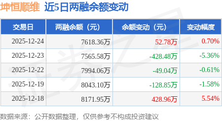 证券之星消息,12月24日,坤恒顺维(688283)融资买入763.64万元,融资偿还710.86万元,融资净买入52.78万元,融资余额7618.36万元。