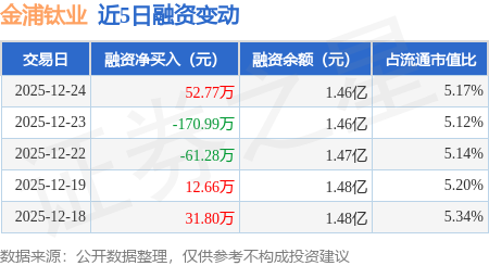 证券之星消息,12月24日,金浦钛业(000545)融资买入449.17万元,融资偿还396.4万元,融资净买入52.77万元,融资余额1.46亿元。