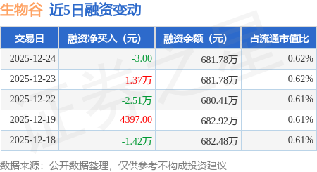 证券之星消息,12月24日,生物谷(920266)融资买入3.53万元,融资偿还3.53万元,融资净卖出0.0万元,融资余额681.78万元。