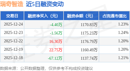 证券之星消息,12月24日,瑞奇智造(920781)融资买入26.62万元,融资偿还31.02万元,融资净卖出4.4万元,融资余额1170.83万元。