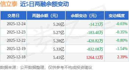证券之星消息,12月24日,信立泰(002294)融资买入1012.21万元,融资偿还1020.42万元,融资净卖出8.21万元,融资余额5.15亿元,近20个交易日中有11个交易日出现融资净买入。