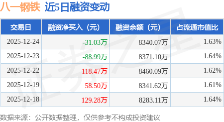 证券之星消息,12月24日,八一钢铁(600581)融资买入66.91万元,融资偿还97.94万元,融资净卖出31.03万元,融资余额8340.07万元。