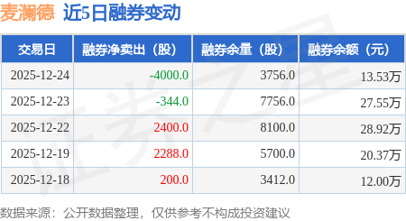 证券之星消息,12月24日,麦澜德(688273)融资买入262.5万元,融资偿还327.16万元,融资净卖出64.67万元,融资余额1.05亿元,近20个交易日中有11个交易日出现融资净买入。