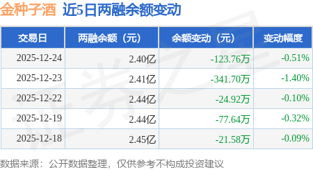 证券之星消息,12月24日,金种子酒(600199)融资买入164.11万元,融资偿还290.67万元,融资净卖出126.56万元,融资余额2.39亿元。