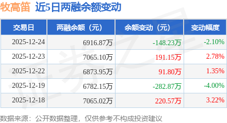证券之星消息,12月24日,牧高笛(603908)融资买入480.29万元,融资偿还628.62万元,融资净卖出148.33万元,融资余额6887.13万元,近20个交易日中有12个交易日出现融资净买入。