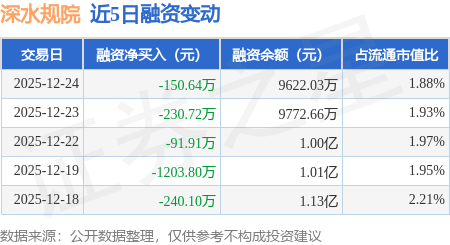 证券之星消息,12月24日,深水规院(301038)融资买入593.08万元,融资偿还743.71万元,融资净卖出150.64万元,融资余额9622.03万元。