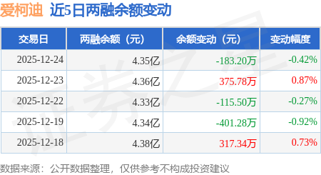 证券之星消息,12月24日,爱柯迪(600933)融资买入1425.53万元,融资偿还1609.91万元,融资净卖出184.39万元,融资余额4.34亿元。