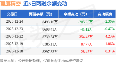 证券之星消息,12月24日,夏厦精密(001306)融资买入504.92万元,融资偿还709.63万元,融资净卖出204.71万元,融资余额8466.03万元。