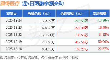 证券之星消息,12月24日,鹿得医疗(920278)融资买入366.86万元,融资偿还593.41万元,融资净卖出226.55万元,融资余额1393.97万元,近20个交易日中有11个交易日出现融资净买入。