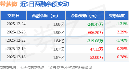 证券之星消息,12月24日,希荻微(688173)融资买入1521.54万元,融资偿还1768.39万元,融资净卖出246.85万元,融资余额1.88亿元。