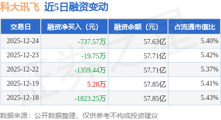 证券之星消息,12月24日,科大讯飞(002230)融资买入1.12亿元,融资偿还1.2亿元,融资净卖出737.57万元,融资余额57.63亿元。