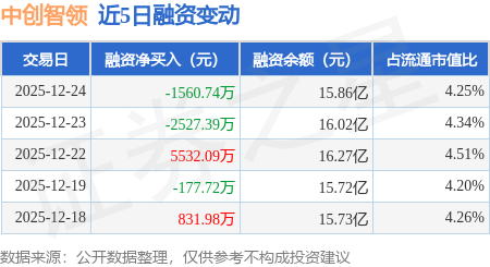 证券之星消息,12月24日,中创智领(601717)融资买入3672.45万元,融资偿还5233.19万元,融资净卖出1560.74万元,融资余额15.86亿元。