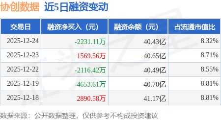 证券之星消息,12月24日,协创数据(300857)融资买入1.92亿元,融资偿还2.15亿元,融资净卖出2231.11万元,融资余额40.43亿元,近20个交易日中有12个交易日出现融资净买入。