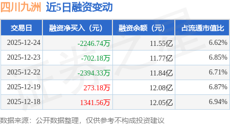 证券之星消息,12月24日,四川九洲(000801)融资买入6104.29万元,融资偿还8351.03万元,融资净卖出2246.74万元,融资余额11.55亿元,近20个交易日中有11个交易日出现融资净买入。