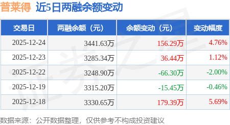 证券之星消息,12月24日,普莱得(301353)融资买入224.54万元,融资偿还68.25万元,融资净买入156.29万元,融资余额3441.63万元。