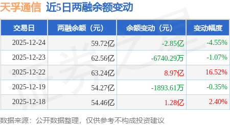 证券之星消息,12月24日,天孚通信(300394)融资买入10.85亿元,融资偿还13.7亿元,融资净卖出2.84亿元,融资余额59.38亿元,近20个交易日中有11个交易日出现融资净买入。