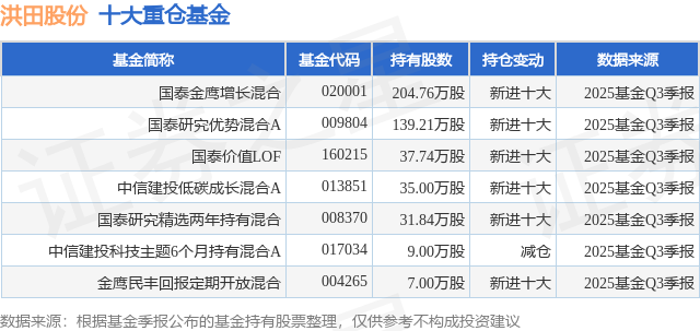 重仓洪田股份的公募基金请见下表: