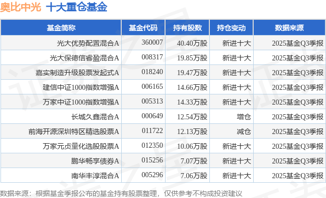 重仓奥比中光的前十大公募基金请见下表: