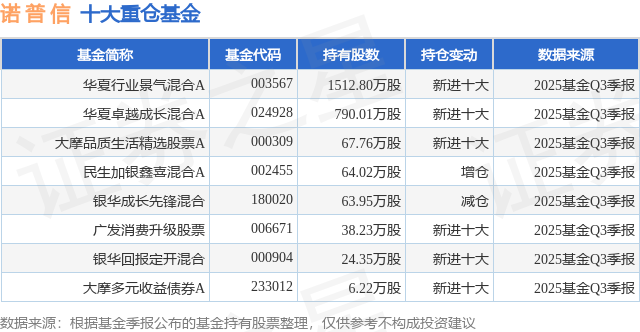 根据2025基金Q3季报公募基金重仓股数据,重仓该股的公募基金共8家,其中持有数量最多的公募基金为华夏基金的华夏行业景气混合A。华夏行业景气混合A目前规模为89.72亿元,最新净值4.8348(12月24日),较上一交易日上涨0.99%,近一年上涨54.6%。该公募基金现任基金经理为钟帅。钟帅在任的基金产品包括:华夏远见成长一年持有混合A,管理时间为2022年9月20日至今,期间收益率为34.88%;华夏招鑫鸿瑞混合A,管理时间为2024年1月16日至今,期间收益率为112.77%;华夏卓越成长混合A,管理时间为2025年8月12日至今,期间收益率为14.23%。
