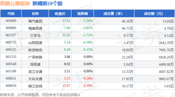 从资金流向上来看,当日铁路公路板块主力资金净流出9236.42万元,游资资金净流出8207.2万元,散户资金净流入1.74亿元。铁路公路板块个股资金流向见下表: