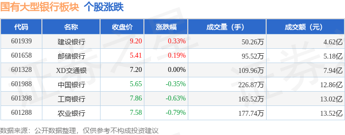 从资金流向上来看,当日国有大型银行板块主力资金净流出7.75亿元,游资资金净流入2.6亿元,散户资金净流入5.15亿元。国有大型银行板块个股资金流向见下表: