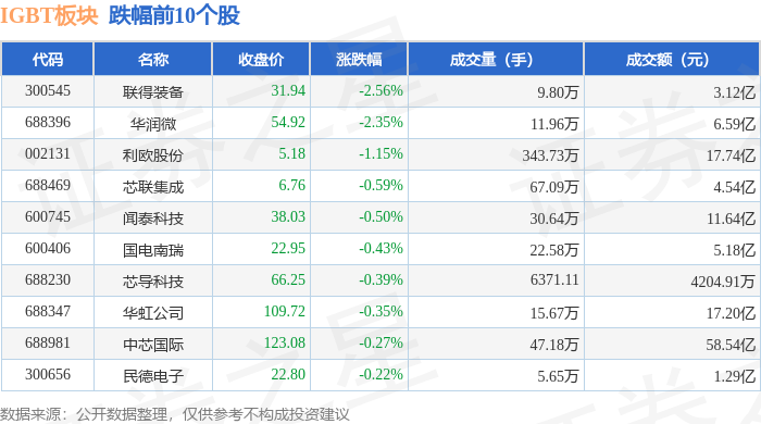 从资金流向上来看,当日IGBT板块主力资金净流出6.02亿元,游资资金净流入2460.72万元,散户资金净流入5.77亿元。IGBT板块个股资金流向见下表: