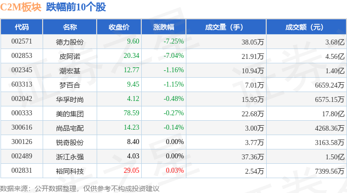 证券之星消息,12月25日C2M板块较上一交易日上涨0.97%,松霖科技领涨。当日上证指数报收于3959.62,上涨0.47%。深证成指报收于13531.41,上涨0.33%。C2M板块个股涨跌见下表: