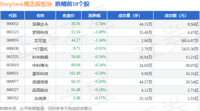 从资金流向上来看,当日DeepSeek概念股板块主力资金净流出14.54亿元,游资资金净流入4.18亿元,散户资金净流入10.35亿元。DeepSeek概念股板块个股资金流向见下表: