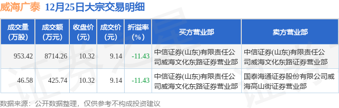 证券之星消息,12月25日威海广泰发生大宗交易,交易数据如下: