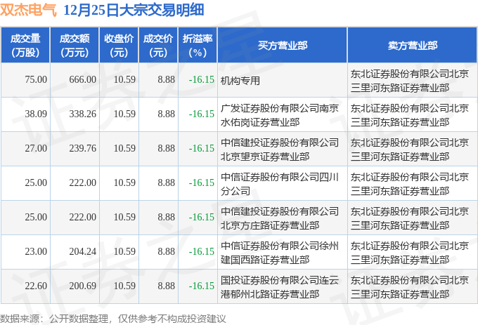 证券之星消息,12月25日双杰电气发生大宗交易,交易数据如下: