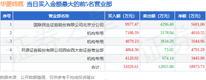 证券之星消息,沪深交易所2025年12月25日公布的交易公开信息显示,华菱线缆(001208)因日涨幅偏离值达到7%的前5只证券,日换手率达到20%的前5只证券登上龙虎榜。此次是近5个交易日内第4次上榜。