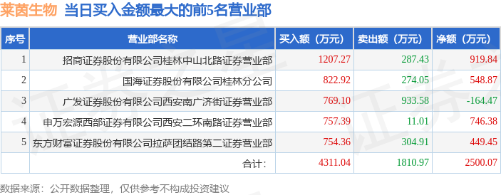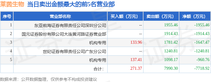 从龙虎榜公布的当日买卖数据来看,机构合计净卖出2608.23万元。粉葛等知名游资榜上有名。(知名游资粉葛一般指东亚前海证券有限责任公司深圳分公司席位,根据市场资料整理,仅供参考)