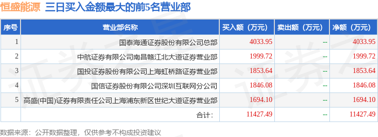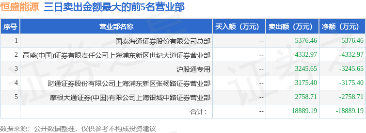 证券之星消息,沪深交易所2025年12月25日公布的交易公开信息显示,恒盛能源(605580)因非ST、*ST和S证券连续三个交易日内收盘价格跌幅偏离值累计达到20%的证券登上龙虎榜。此次是近5个交易日内第3次上榜。