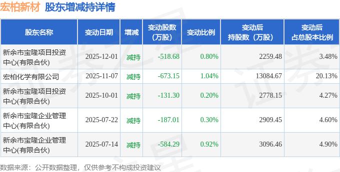 该股近半年内有股东持股变动,合计净减持2094.42万股,股东增减持明细如下表: