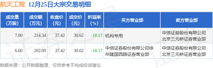 证券之星消息,12月25日航天工程发生大宗交易,交易数据如下: