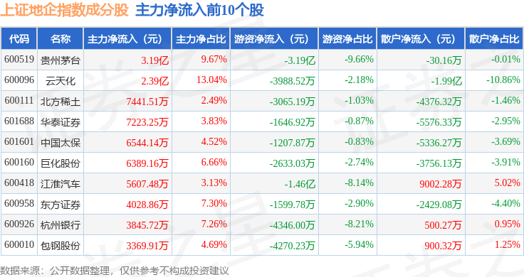 资金流向方面,上证地企(000055)指数成份股当日主力资金净流出合计12.83亿元,游资资金净流出合计1.24亿元,散户资金净流入合计14.07亿元。成份股资金流向详情见下表: