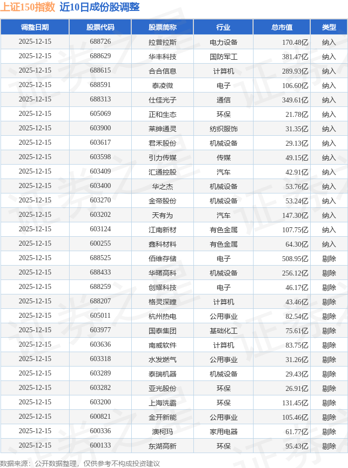 近10日内上证150(000133)指数成份股做了调整,新纳入了15只股票,剔除了14只股票。