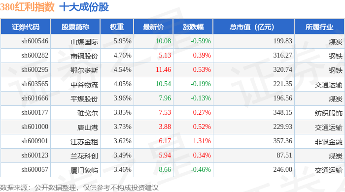 380红利(000150)指数十大成份股详情如下: