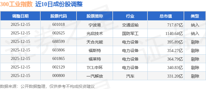 近10日内300工业(000910)指数成份股做了调整,新纳入了2只股票,剔除了5只股票。