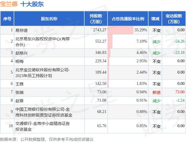 根据宝兰德2025年三季报公布的十大股东详情如下: