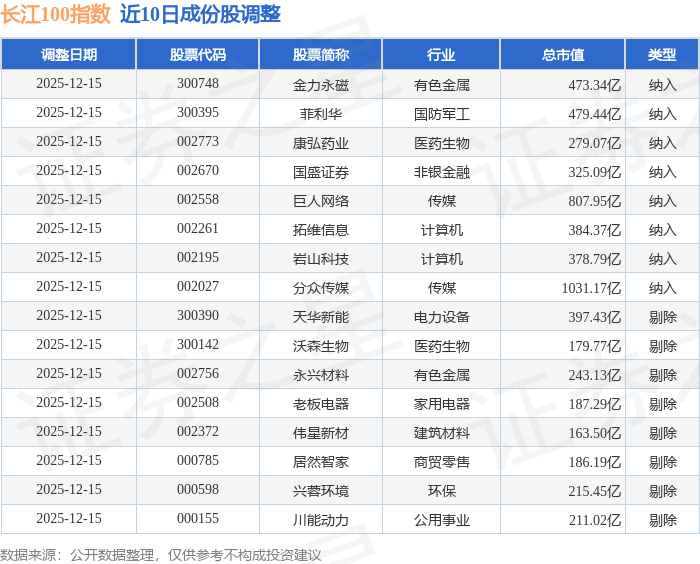 近10日内长江100(399278)指数成份股做了调整,新纳入了8只股票,剔除了8只股票。