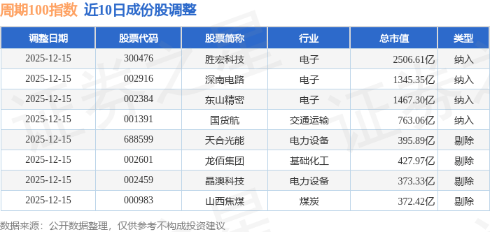 周期100(399402)指数十大成份股详情如下: